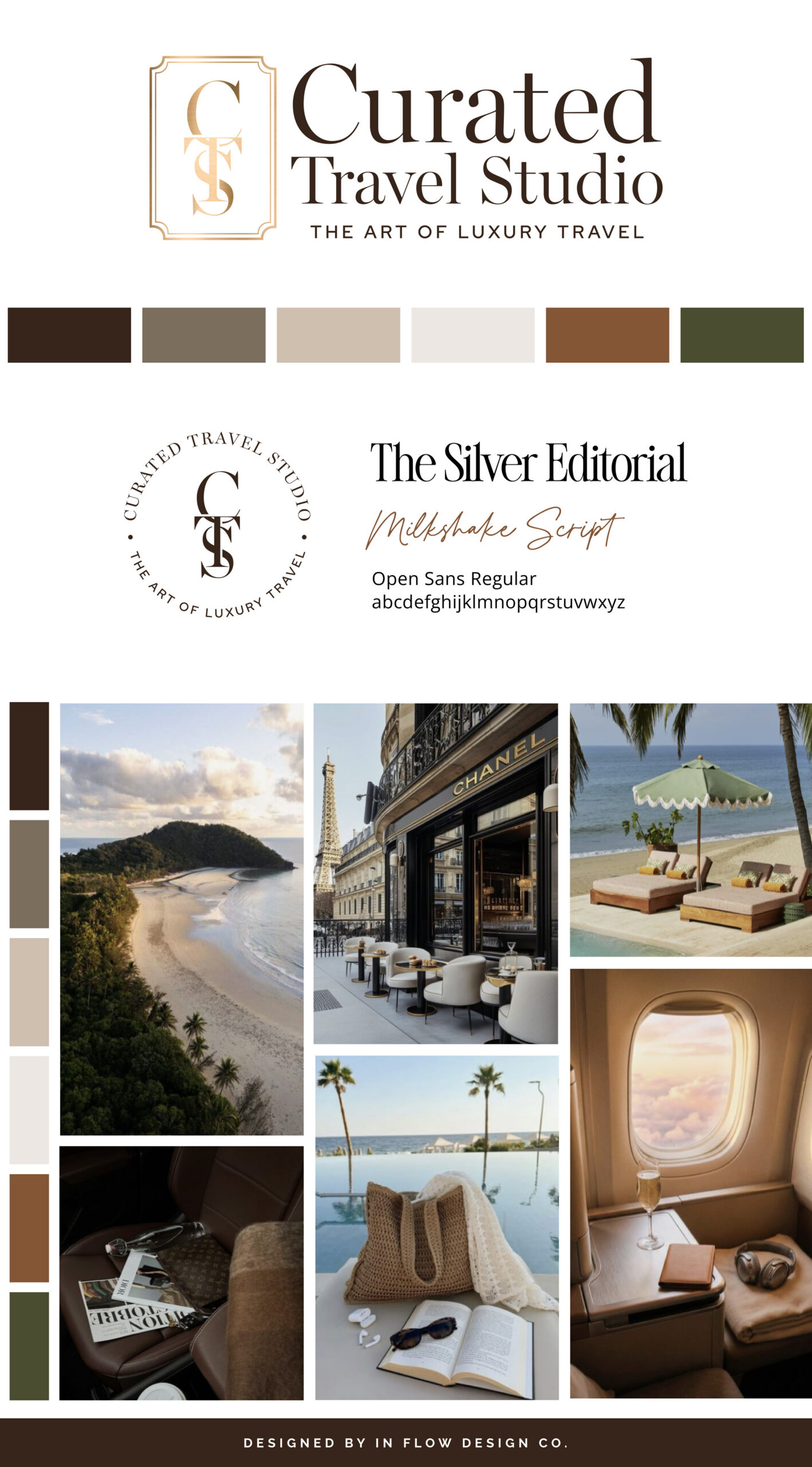 Kelli, the founder of Curated Travel Studio, envisioned a brand that feels confident, sophisticated, and professional. Her inspiration was rooted in a love of neutral tones and elevated editorial typography.